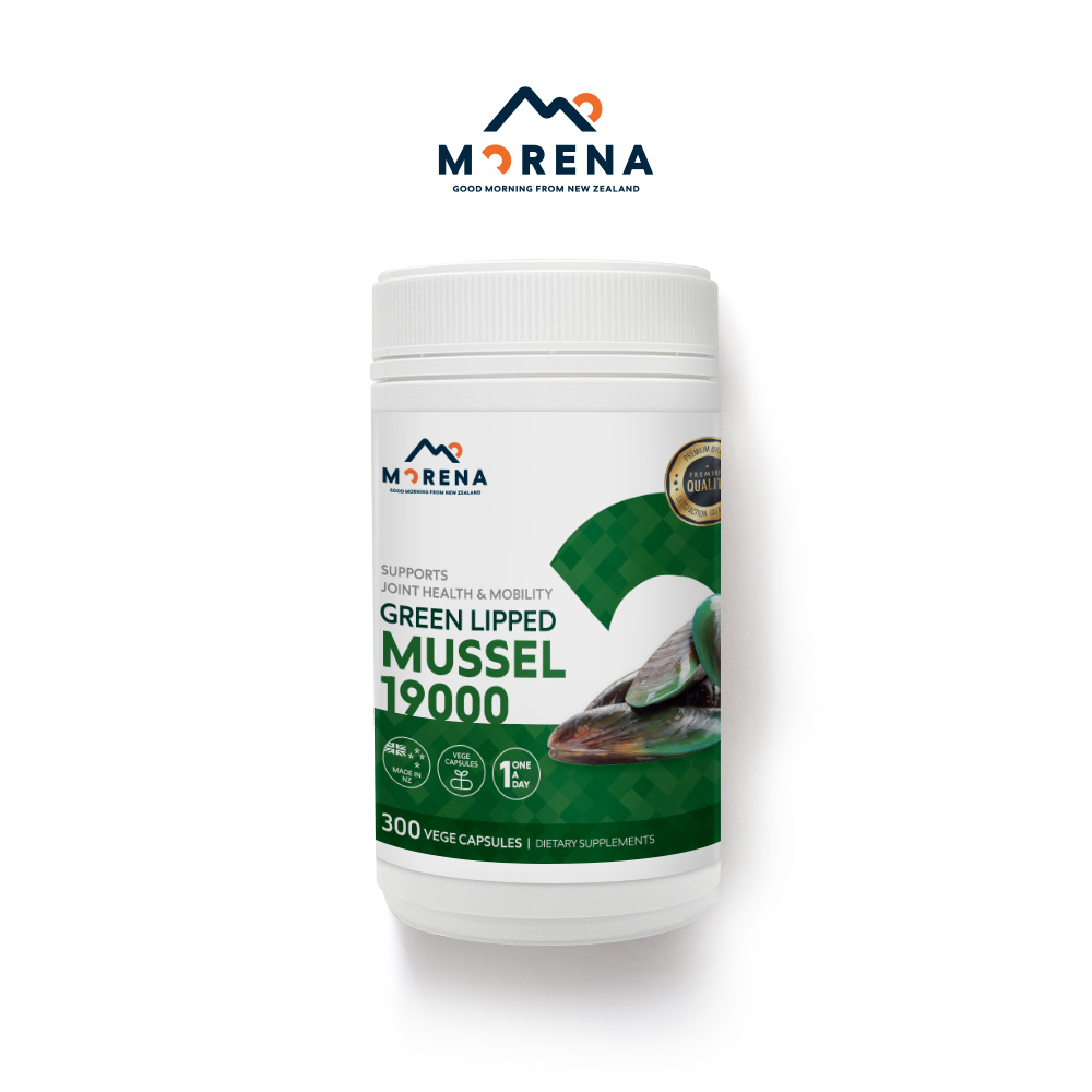 MORENA Green Lipped Mussel 19000 is a powerful joint support formula containing high concentration of pure New Zealand Green Lipped Mussel extract and Vitamin D.